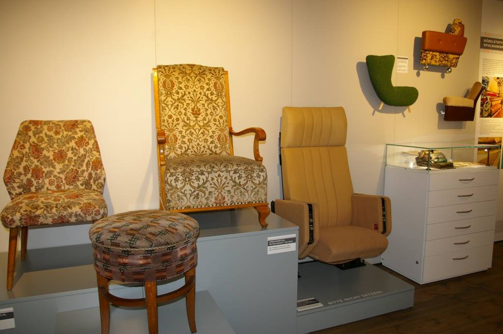 Entdecken Sie historische Originalstoffe, Möbel und Maschinen und erfahren Sie mehr über die Unternehmen, die diese Tradition prägten.